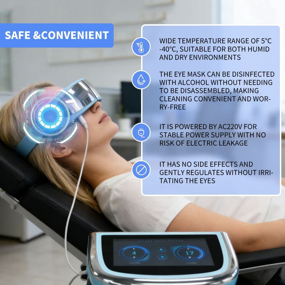 1. Alpha Wave Technology The device uses specific alpha wave frequencies to mimic the natural relaxation state of your brain. It calms overstimulated visual nerves, eases mental tension, and helps improve sleep quality — perfect for anyone who struggles with eye strain that keeps them up at night.